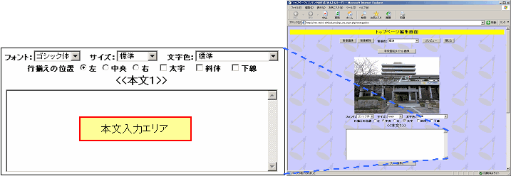 | 本文入力エリア: | ここにページに表示する文章を入力して下さい。 |